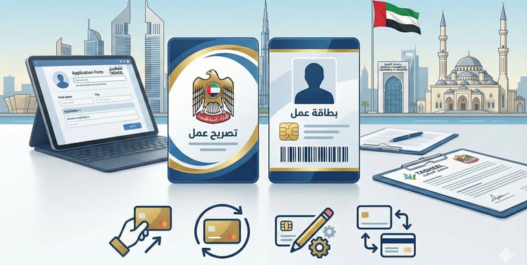 Tasheel processes MOHRE services, including work permits, labour cards, contracts, and labour disputes.